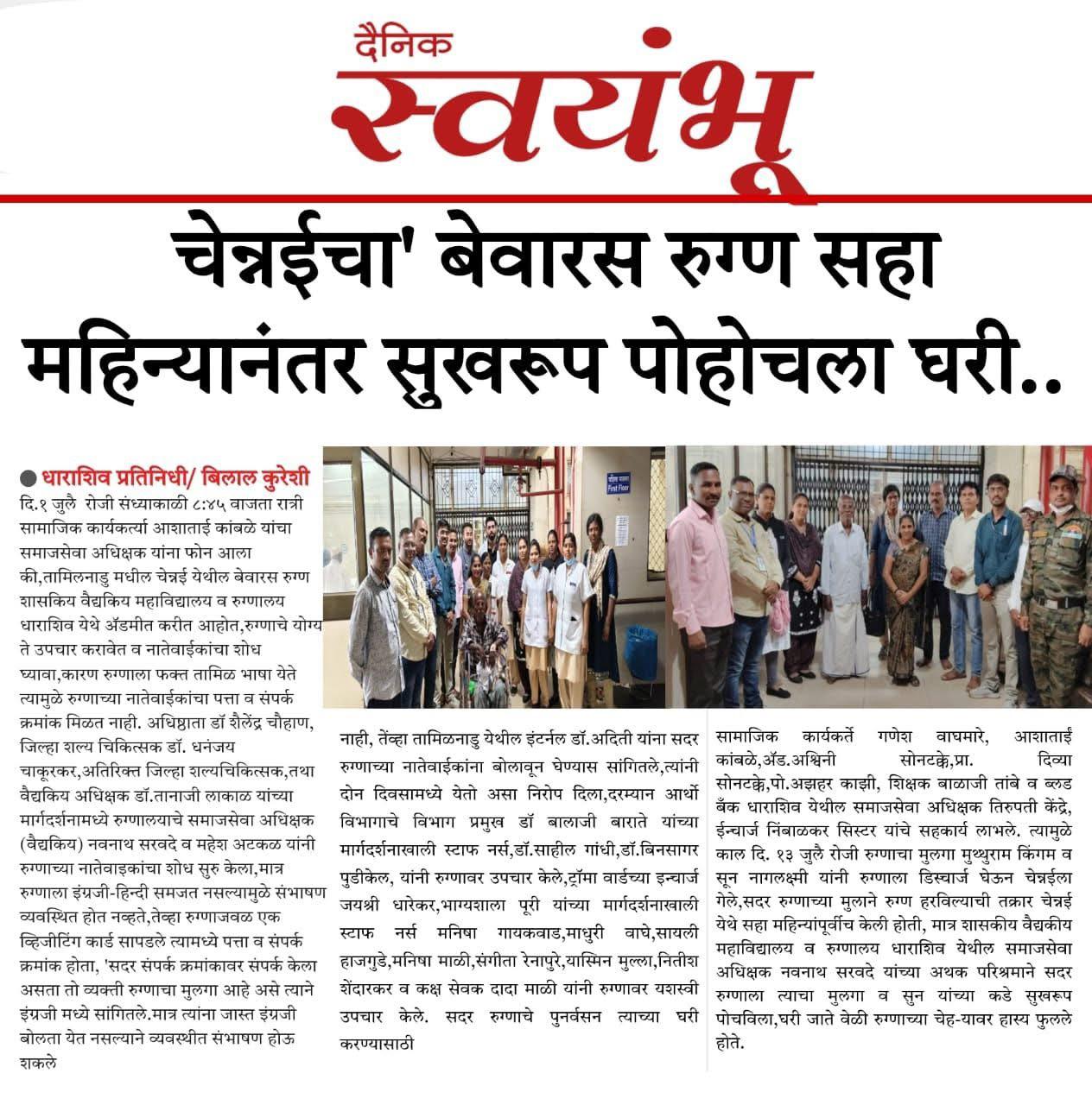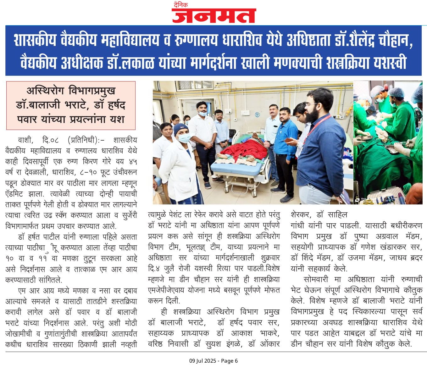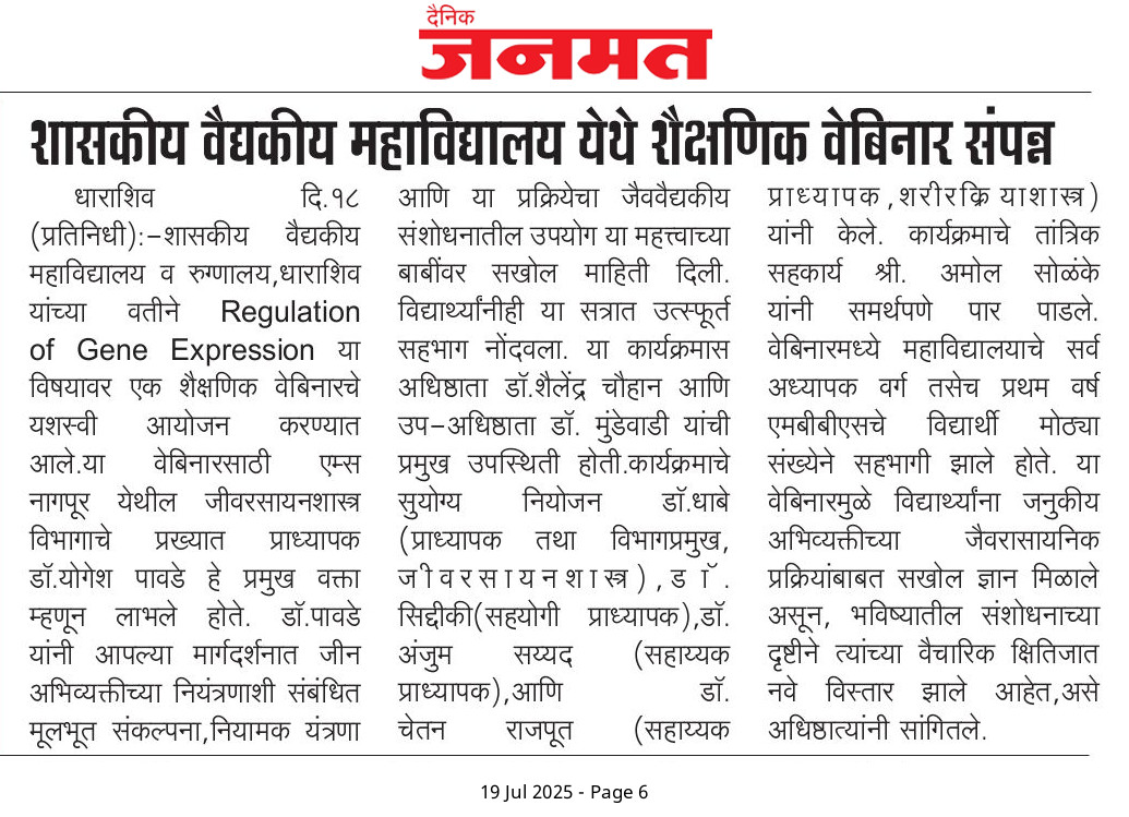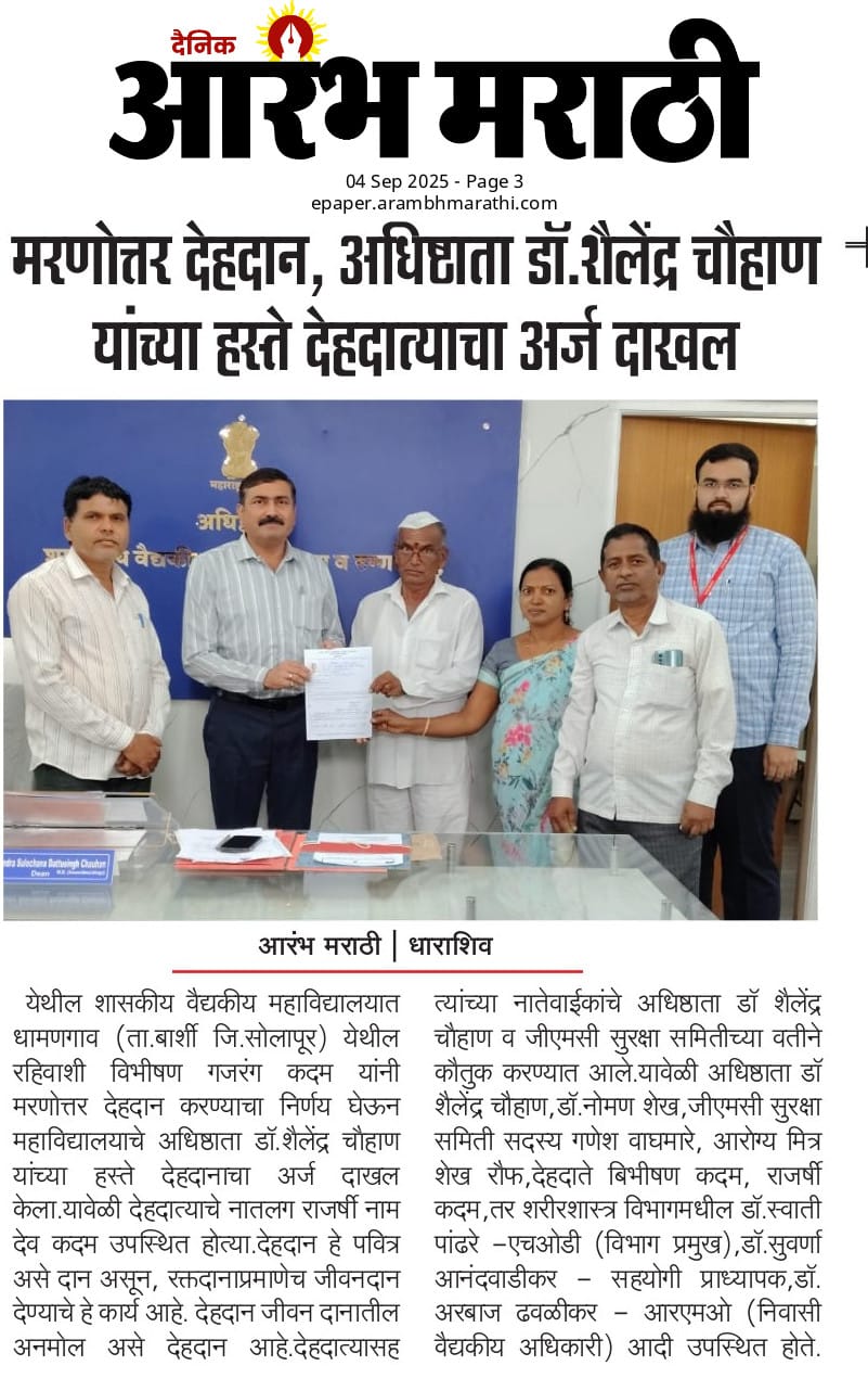 • Government Medical College & Hospital, Dharashiv. Marwad Galli, Civil Hospital Campus, Administrative Wing, Ground Floor, Dharashiv 413 501.